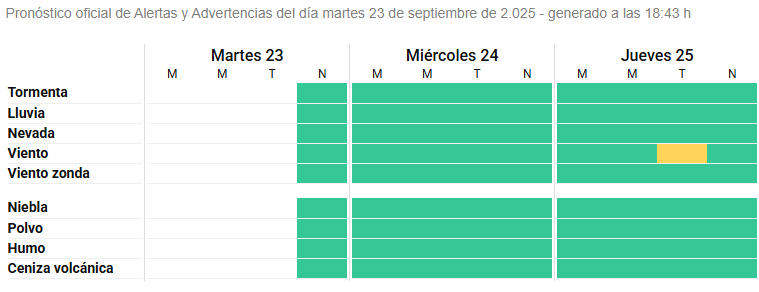 El aviso detalló que “el área será afectada por vientos del sector norte con velocidades entre 35 y 55 km/h, y ráfagas que pueden alcanzar los 80 km/h”.