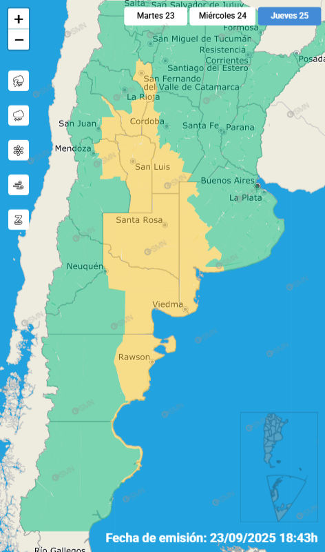 El alerta incluye la costa de Coronel Dorrego, Coronel Rosales, Villarino y Monte Hermoso; oeste de Patagones y Villarino, Puan, zona baja de Coronel Pringles, Coronel Suárez, Saavedra y de Tornquist, entre otros.