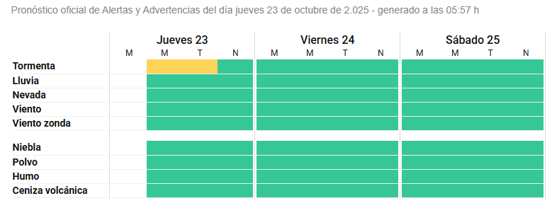 El Servicio Meteorológico Nacional anunció que mantiene el alerta amarillo por tormentas para la mañana y la tarde de este jueves.