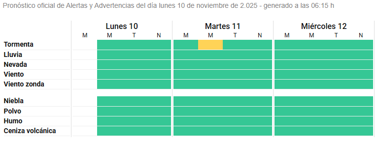 El SMN mantiene el alerta amarillo para este martes en Bahía Blanca
