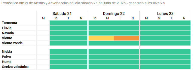 El organismo precisó que durante la madrugada y la mañana del domingo regirá un alerta amarillo por vientos a fuerte velocidad y lo eleva a naranja para la tarde y las últimas horas.