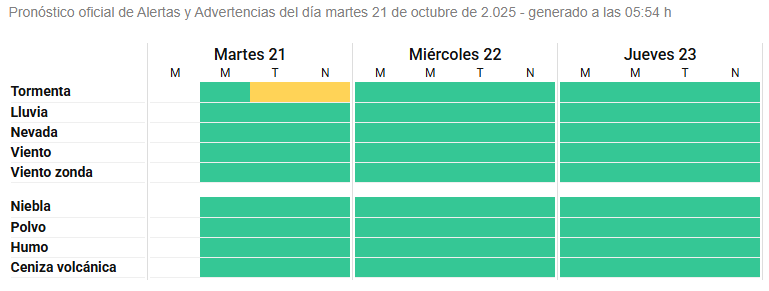 El Servicio Meteorológico Nacional (SMN) informó que rige un alerta amarillo por tormentas para la tarde y la noche de este martes en Bahía Blanca.
