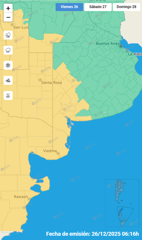 El SMN ratifica el doble alerta amarillo para Bahía Blanca