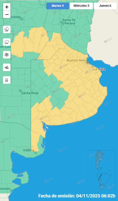 El alerta amarillo abarca un territorio muy extenso de la provincia de Buenos Aires.