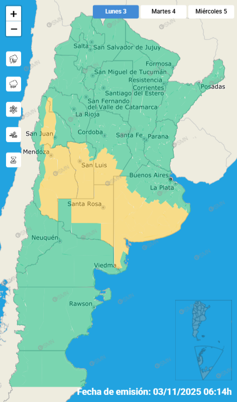 “Las mismas podrán provocar abundante caída de agua en cortos períodos, intensas ráfagas que pueden alcanzar localmente los 70 km/h, actividad eléctrica frecuente y ocasional caída granizo. Se prevén valores de precipitación acumulada entre 20 y 55 mm, pudiendo ser superados de manera puntual”, señaló.