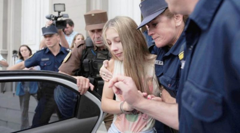 Nahir Galarza en los tribunales de Gualeguay, escoltada por la policía (El Once)