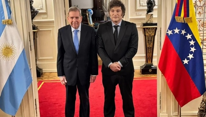 El venezolano González Urrutia se reunió con Milei y salieron al balcón de la Casa Rosada