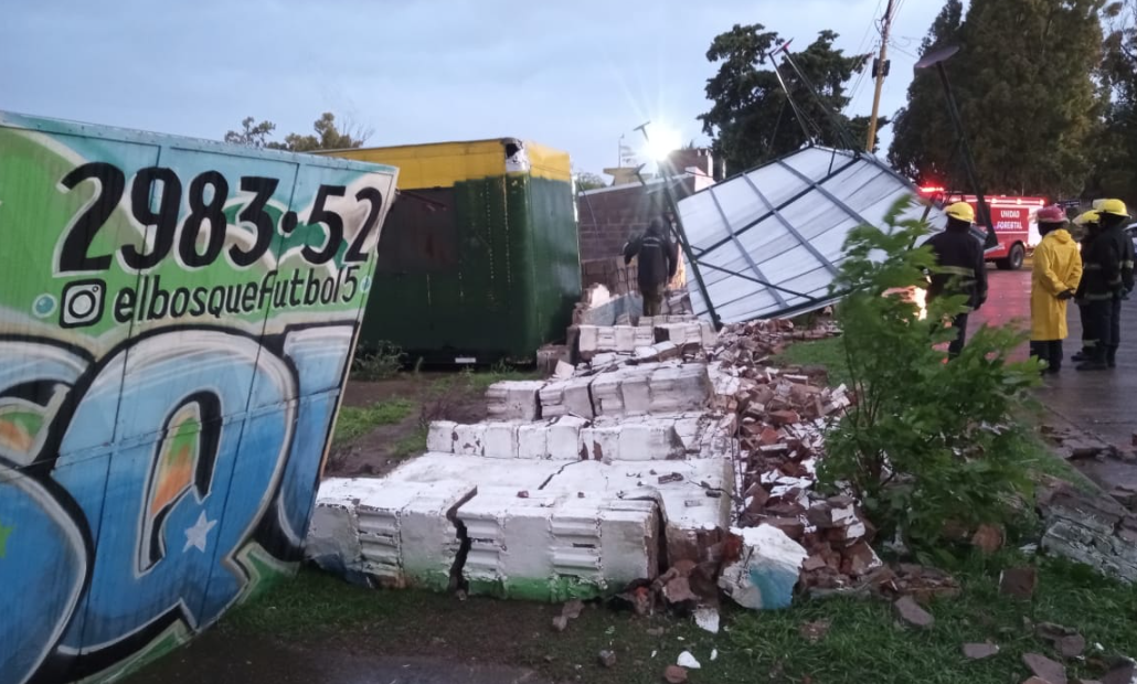 El fuerte viento provocó la destrucción de un paredón y un tinglado que estaba ubicado en el interior del predio del club Villa del Parque. Se reportó que no hubo heridos.