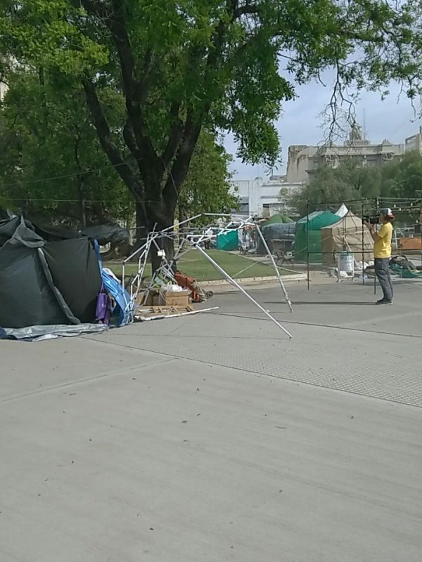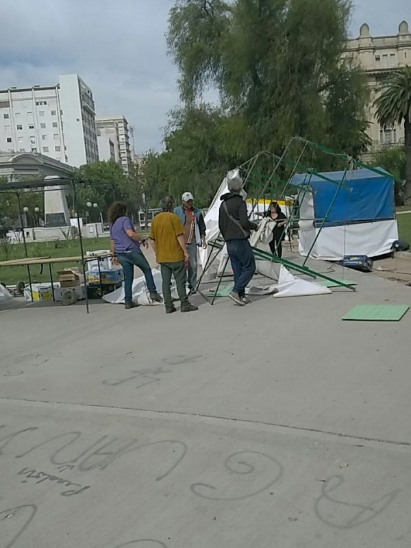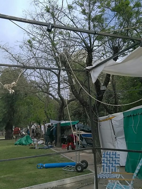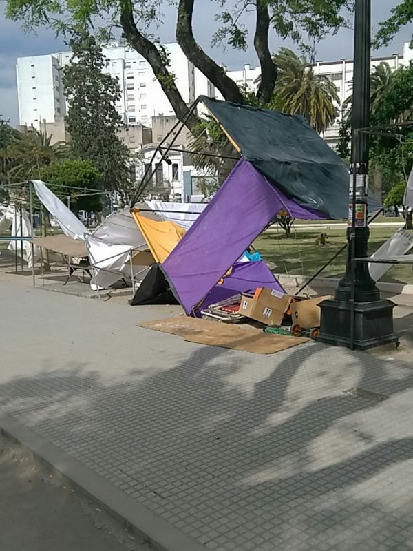 El viento tiene a maltraer a los artesanos en la Plaza Rivadavia