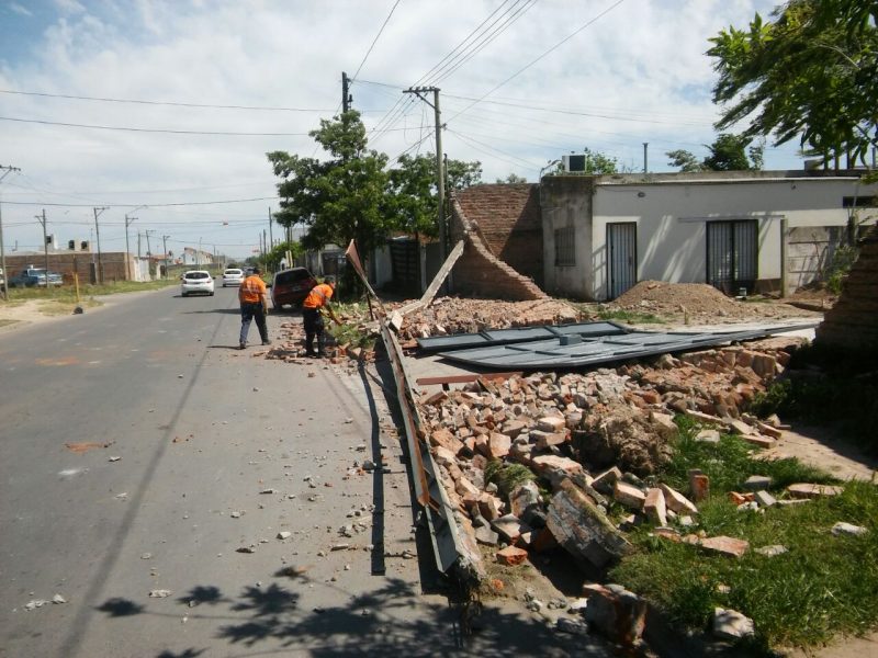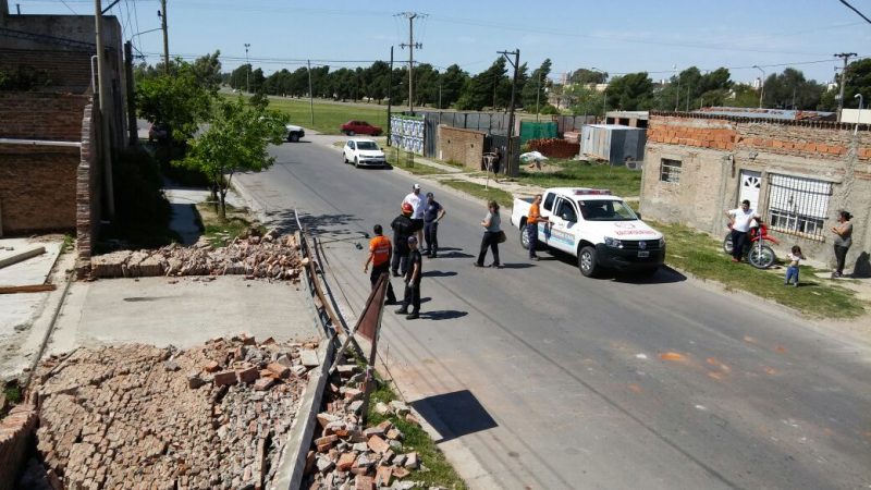 A causa del viento, un paredón de grandes dimensiones se cayó hacia la vereda este lunes en una maderera ubicada en 17 de Mayo al 700.