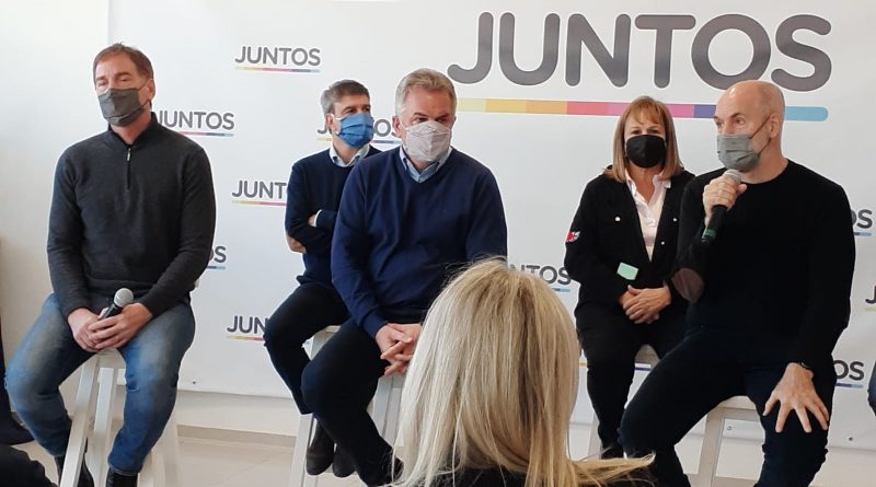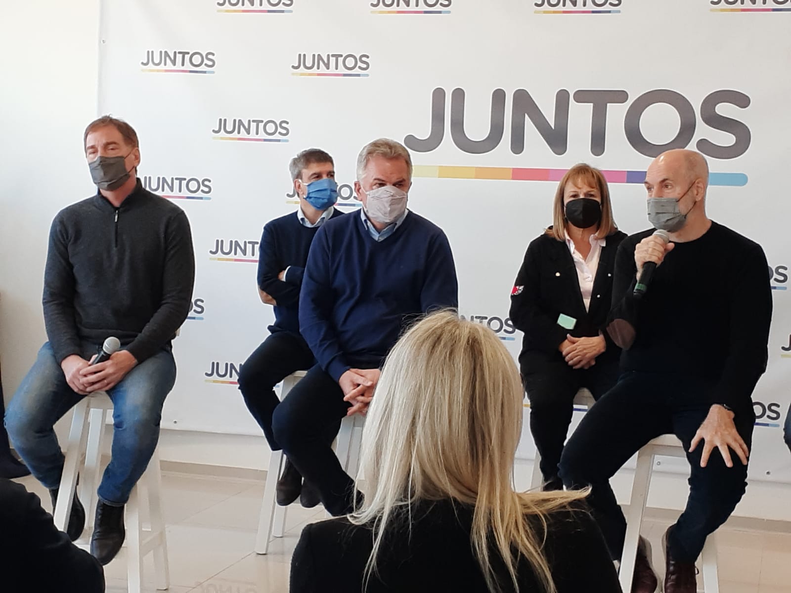 El precandidato a diputado nacional de Juntos, Diego Santilli, y el jefe del gobierno porteño, Horacio Rodríguez Larreta, se encuentran en Bahía Blanca en el marco de la campaña electoral para las primarias del 12 de septiembre próximo.