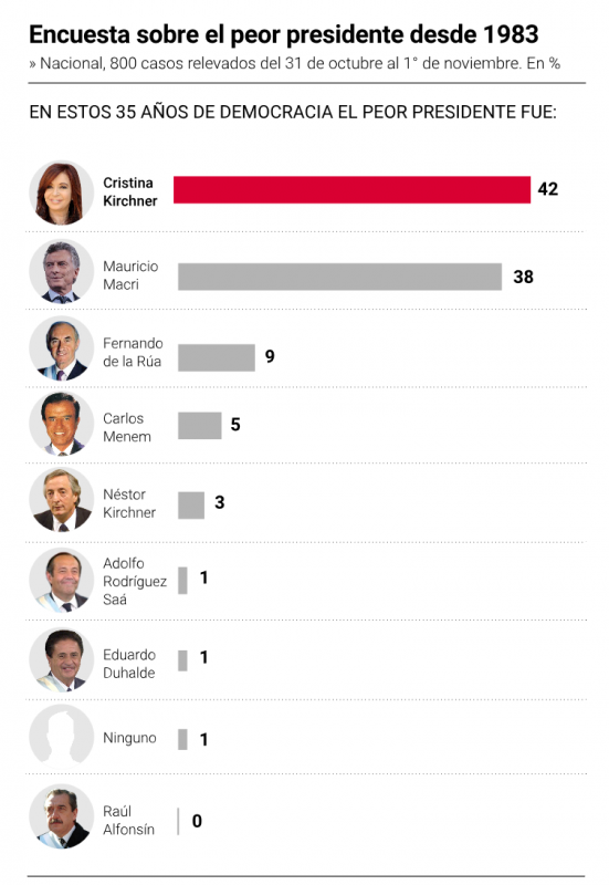 Una consultora hizo una encuesta por los 35 años que se cumplieron del triunfo de Raúl Alfonsín, en aquel histórico 30 de octubre de 1983, y preguntó, entre otras cosas, por el peor presidente desde entonces.