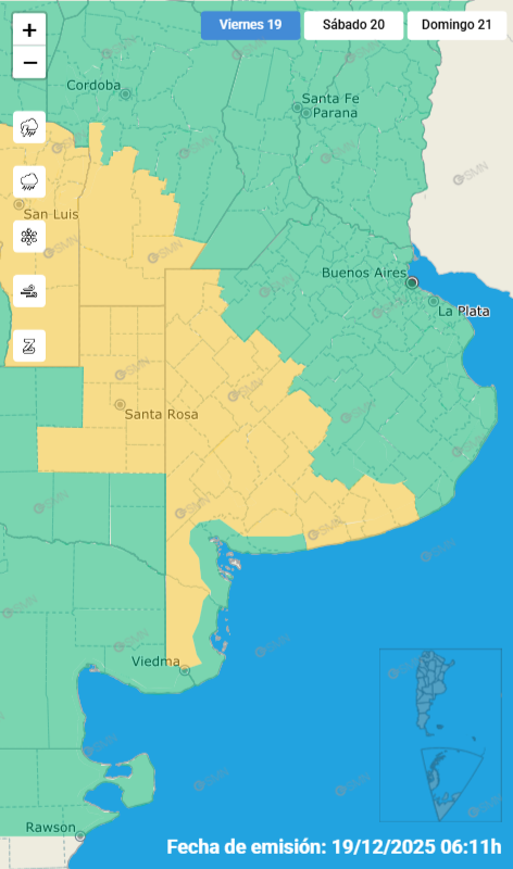 El Servicio Meteorológico Nacional emitió un alerta amarillo para las localidades de Cabildo y Corti por tormentas.
