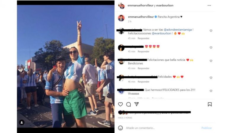 Emmanuel Horvilleur y su pareja, Evangelina Bourbon, anunciaron que van a ser papás. A través de Instagram, el cantante y la bailarina compartieron una dulce foto, en medio de los festejos por el triunfo de Argentina en el Mundial Qatar 2022.