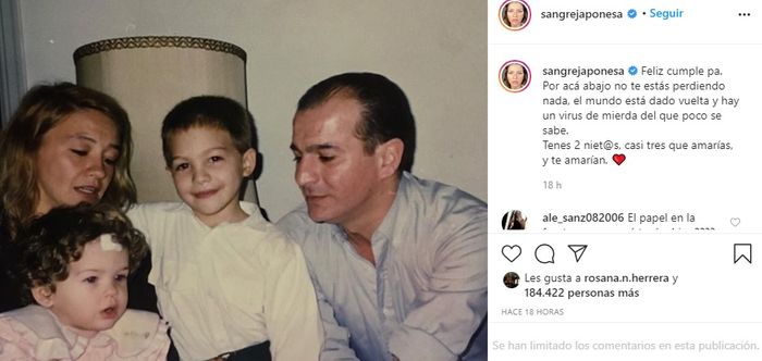 Desde Instagram, la actriz compartió una imagen familiar de la infancia y recordó con amor a su papá.
