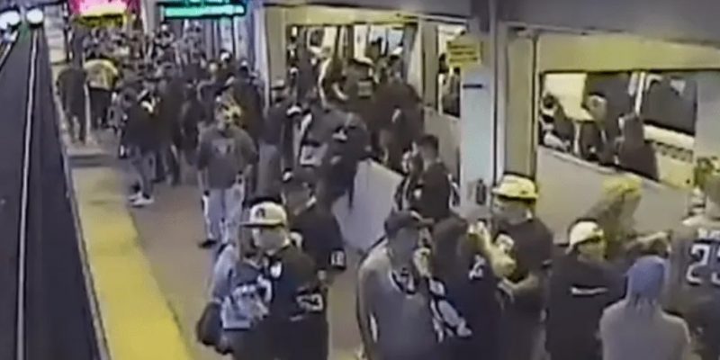 Un empleado salvó a un hombre, que estaba en estado de ebriedad, unos segundos antes de que sea arrollado por un tren. El hecho ocurrió el domingo pasado en la estación de metro de RingCentral Coliseum en Oakland, en el estado de California, Estados Unidos.