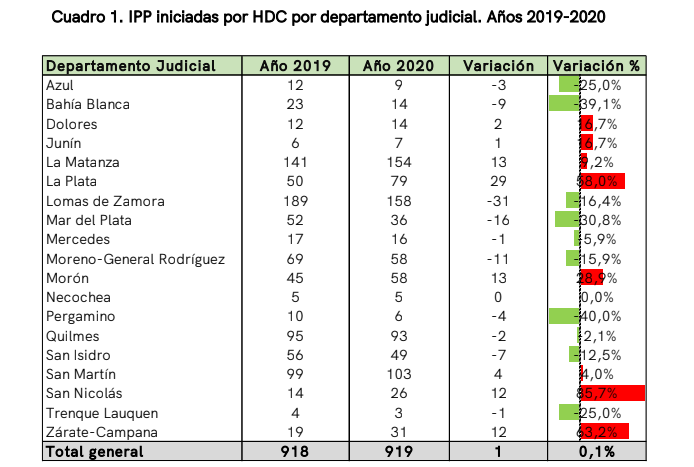 El Informe de Homicidios Dolosos elaborado por la Procuración General señala que en el año 2020 se registraron 14 homicidios dolosos, de ellos 1 fue un femicidio, en el Departamento Judicial de Bahía Blanca.