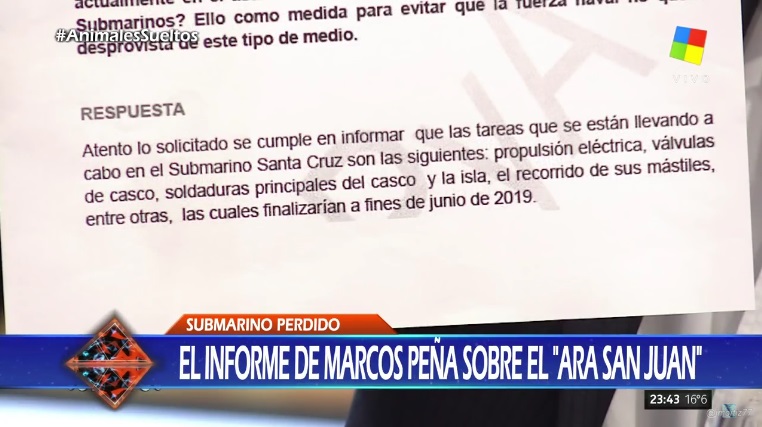 Cuando el jefe de gabinete, Marcos Peña, se presentó en mayo pasado en el Congreso para responder diversas preguntas de los diputados, un miembro de la bancada del Frente para la Victoria le pidió datos al funcionario sobre el ARA San Juan.