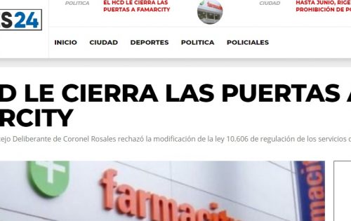 Según el sitio ROSALES24.COM.AR el Concejo Deliberante de Coronel Rosales rechazó la modificación de la ley 10.606 de regulación de los servicios de farmacia en la provincia de Buenos Aires, que le cierra la chance de llegar al distrito a Farmacity.