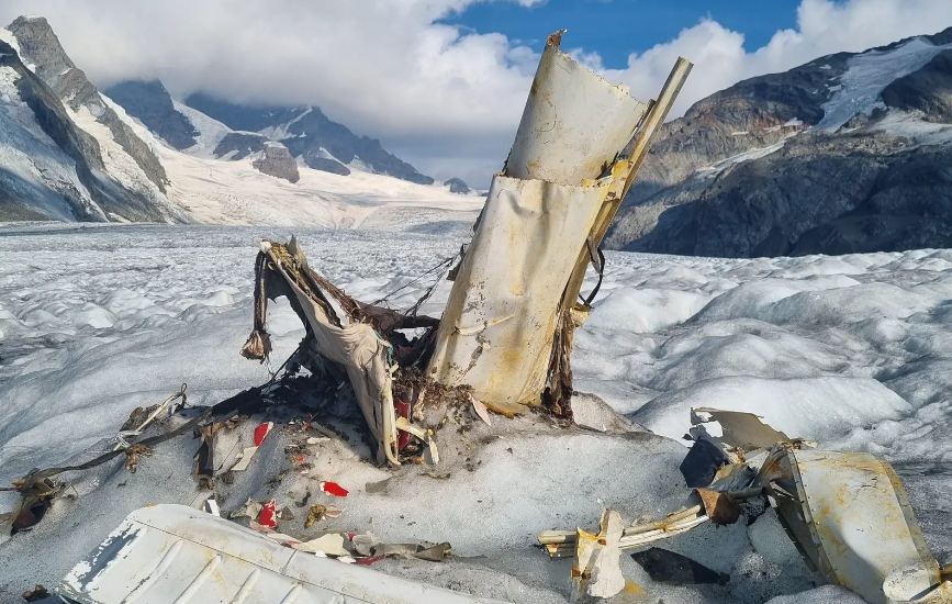 Varias piezas aparecieron en el glaciar Altsch, en el cantón de Wallis (suroeste), cerca de los picos del Jungfrau y Monch.