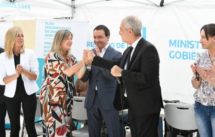Los ministros junto al intendente, Andrés Watson, realizaron un acto de entrega del primer DNI NN en unidades penitenciarias bonaerenses más un DNI por cambio de género.