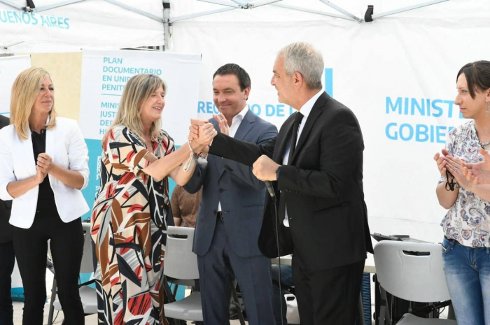 El ministro de Justicia y Derechos Humanos de la provincia de Buenos Aires, Julio Alak, junto a la ministra de Gobierno, Cristina Álvarez Rodríguez, entregaron hoy el primer DNI NN y por cambio se género en una cárcel bonaerense.