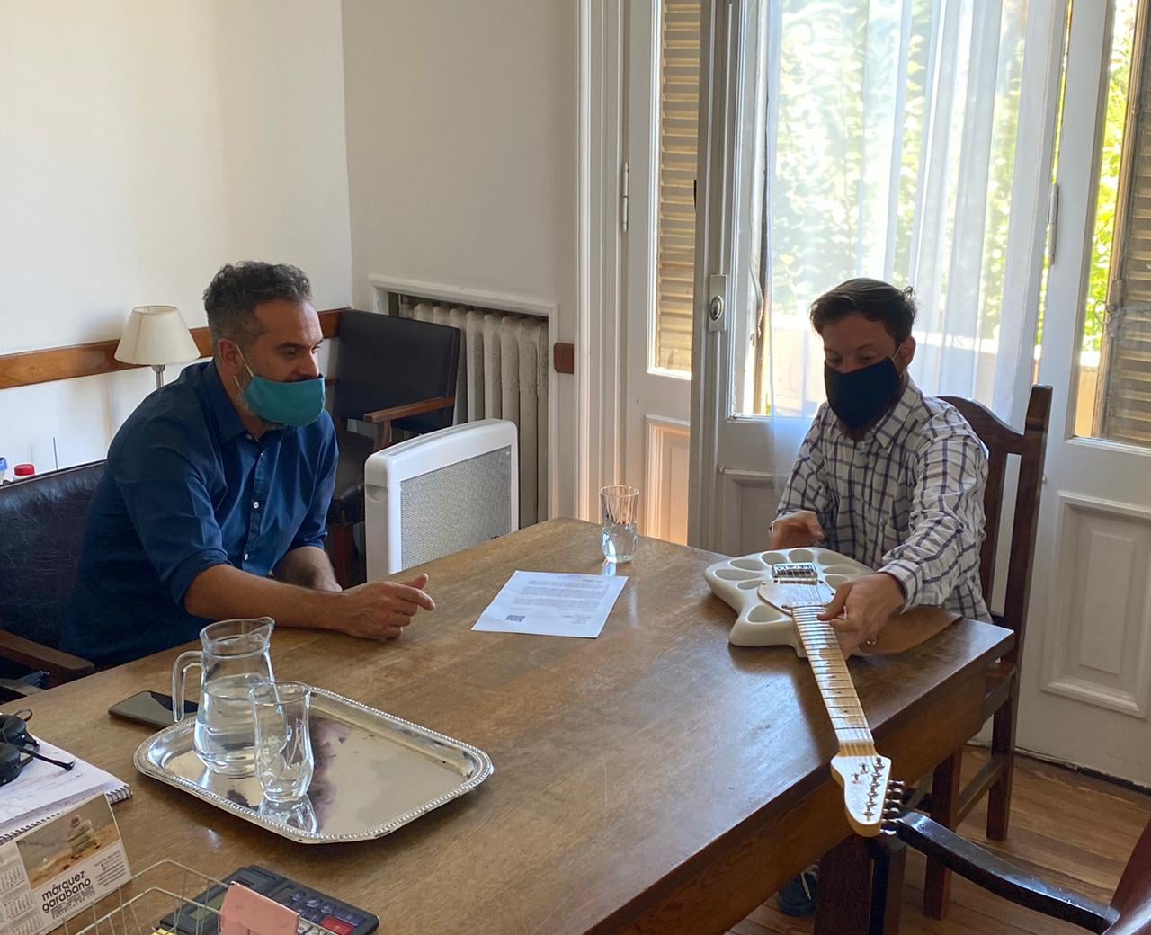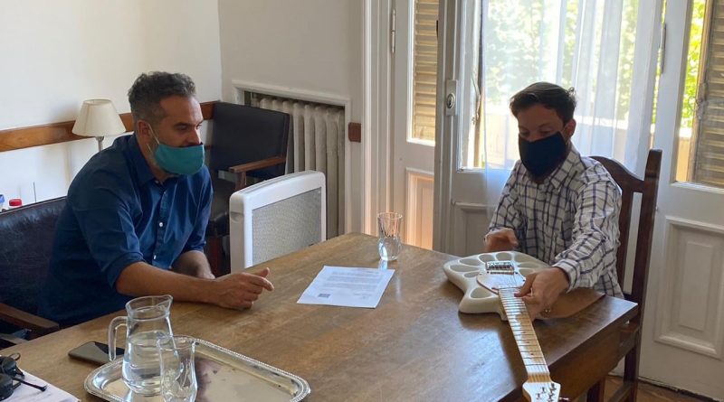 El director del Instituto Cultural, José González Casali, recibió ayer al diseñador industrial Francisco Bonansea Mazzoni, creador de la primera guitarra eléctrica con salida de auriculares, realizada a través de tecnología de impresión 3D.