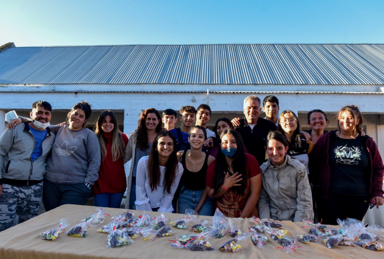 El intendente Héctor Gay participó del encuentro, acompañado por la secretaria de Políticas Sociales, Vanina González; la subsecretaria de Desarrollo Social, Florencia Costantino, integrantes de la entidad fomentista y jóvenes que se encargaron de la elaboración de 450 huevos de chocolate.