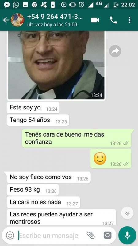 En las capturas, que fueron publicadas en un perfil de Facebook, se puede ver como la conversación, que inicia de una manera totalmente habitual desemboca en una serie de sugerencias sexuales por parte del ex párroco de Santa Teresita.