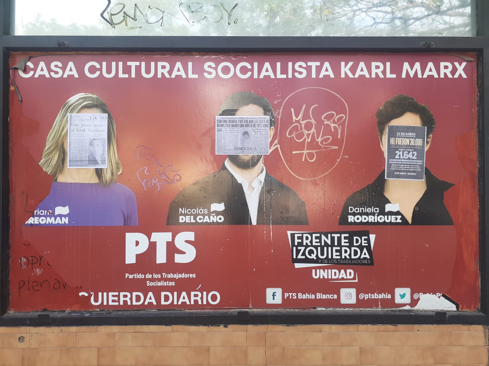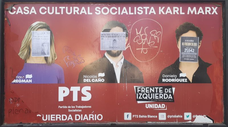 En el Día de la Memoria por la Verdad y la Justicia, escracharon el local que el Partido de los Trabajadores Socialistas (PTS) en el Frente de Izquierda tiene en Zelarrayán al 600 de Bahía Blanca.