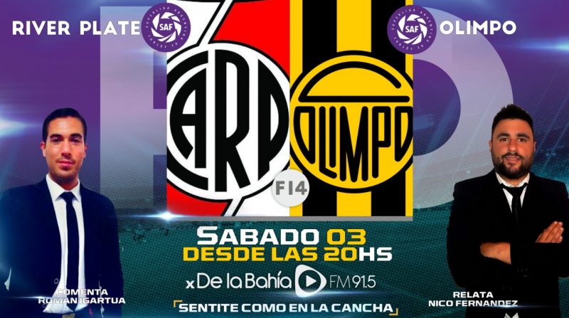 FM DE LA BAHÍA transmitirá este sábado 3 el encuentro entre River y Olimpo, por la 14º fecha de la Superliga.