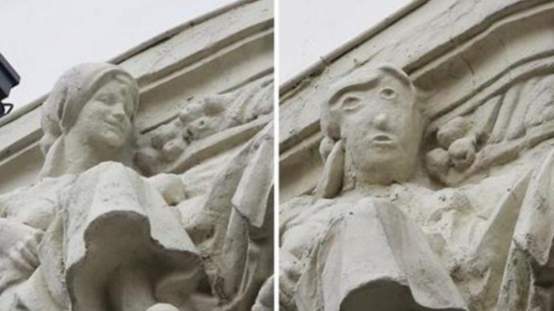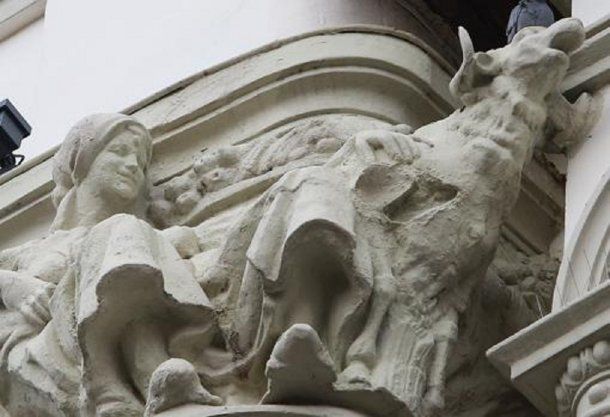 Las autoridades decidieron restaurar una de las cabezas del relieve que corona la parte alta del número 9 de la calle Mayor, un centenario edificio construido en 1919. Según indicaron, aparentemente, tanto la cara de la niña, como la de una cabra parecen haber sido afectadas por una tormenta, pero el resultado posterior dejó asombrados a todos.