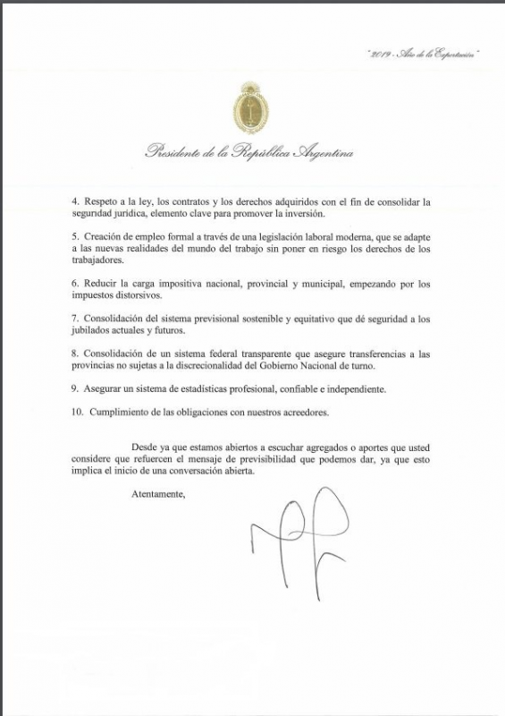 El jefe de Estado convocó a distintos sectores de la política argentina, incluída la oposición, a generar una serie de consensos que le permitan generar gobernabilidad hasta el fin de su mandato, luego de las medidas anunciadas para paliar la crisis en los distintos sectores.