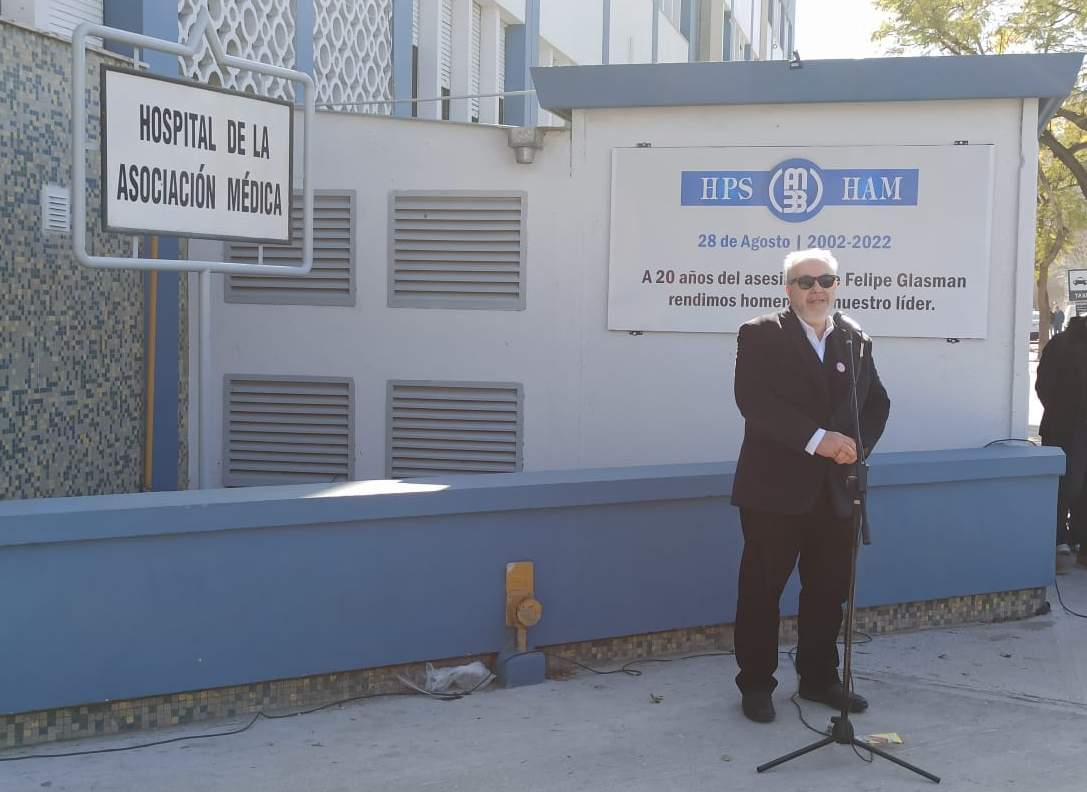 Directivos y personal de la Asociación Médica de Bahía Blanca (AMBB), autoridades locales y personal de salud se reunieron para recordar a Felipe Glasman.