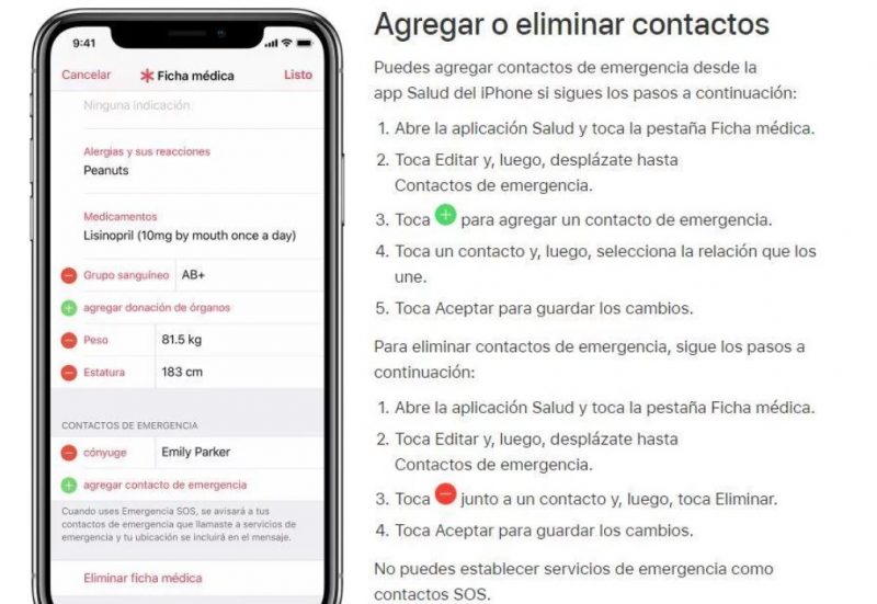 Para agendar a alguna persona como “contacto de emergencia”, deberemos tener activados los “datos médicos” en la aplicación “Salud”. Al abrir esta herramienta deberemos ir a “crear datos médicos” y después “agregar contactos de emergencia”. Además de asignarles ese rol, también podremos especificar nuestra relación con esa persona.