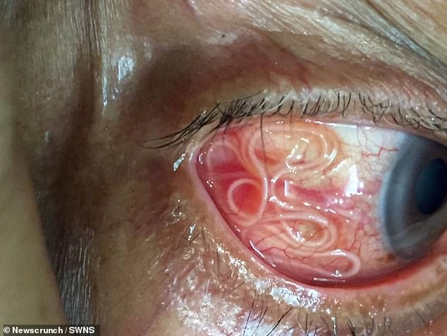 Las imágenes del video hablan por sí solas. Captan el momento en que los médicos retiran un gusano que se retuerce en el ojo de un hombre.