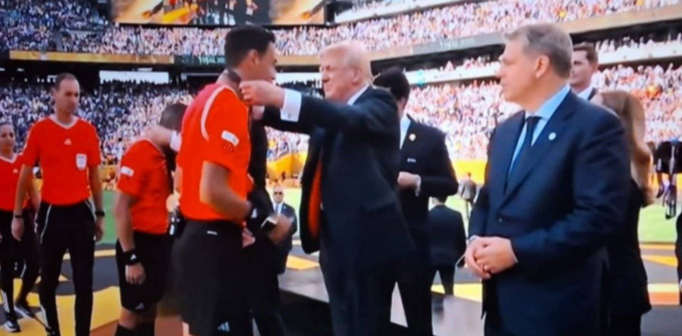Post partido y al momento de la premiación, el bahiense fue distinguido con una medalla que recibió de manos del presidente de los Estados Unidos, Donald Trump, en reconocimiento a su destacada labor.