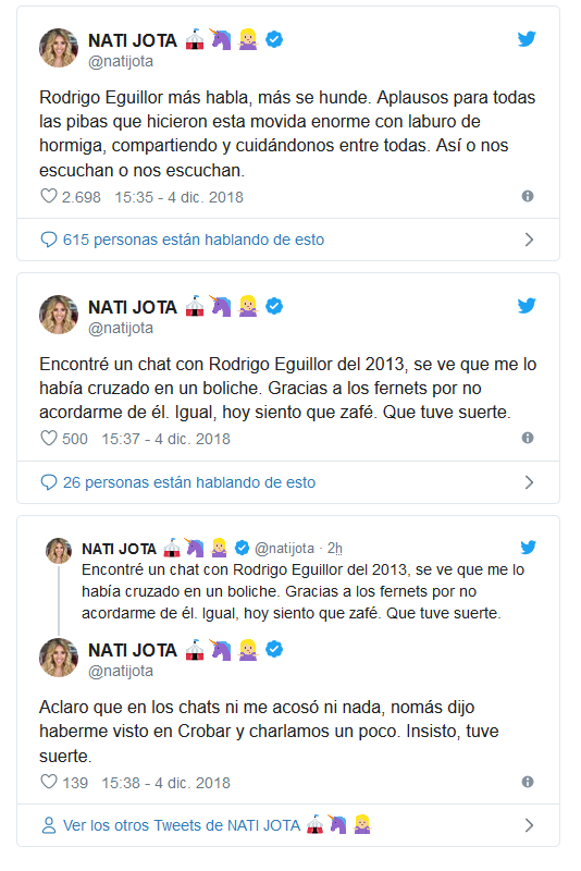 Una de las famosas que tomó la posta para hablar del tema fue Nati Jota, quien en sus redes sociales compartió toda su indignación por lo ocurrido.