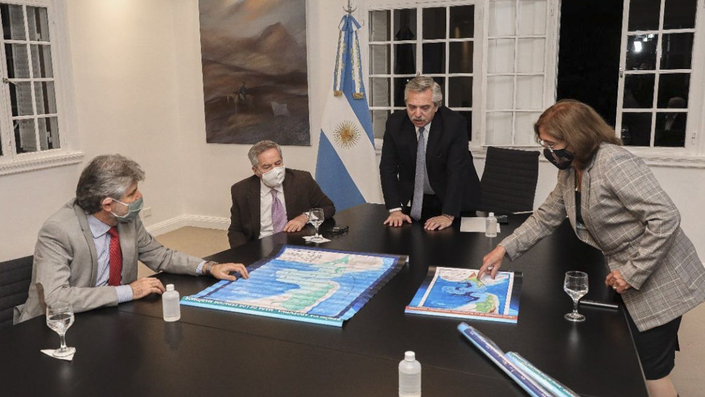 Del encuentro en Olivos participó también la coordinadora general de la Comisión Nacional del Límite Exterior de la Plataforma Continental (COPLA), Frida Armas Pfirter.