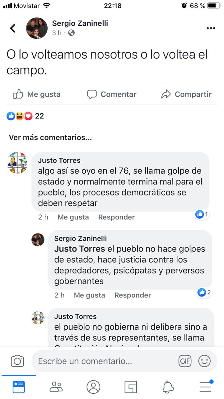 “O lo volteamos nosotros o lo voltea el campo”, señaló.