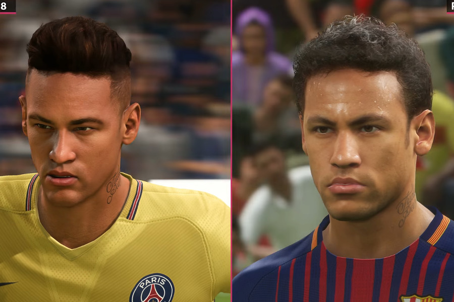 Uno de los aspectos más evidentes y diferenciadores para los más puristas reside en el realismo de los rostros de los jugadores. En este sentido, el FOX Engine demuestra muy buenas formas, con unas caras muchos más perfiladas y auténticas, incluso acercándose al foto-realismo, al menos en los jugadores más reconocibles. En cambio, FIFA 18 y su Frostbite no están a la altura del título de Konami en este sentido, con jugadores que parecen reciclados de entregas pasadas y que distan más de sus homónimos reales.