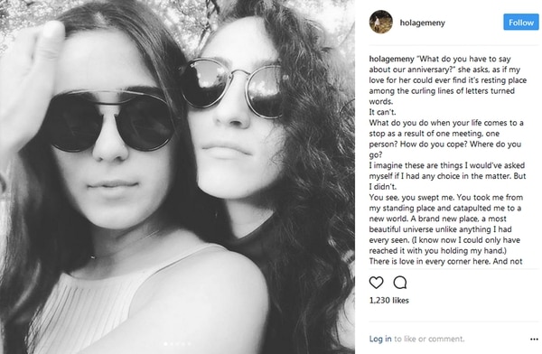 La joven, que es cantante al igual que su madre, aprovechó el primer aniversario de novia junto a Gemeny Hernádez y para festejarlo, decidió que ya era momento de presentarla.”Feliz aniversario para mi persona delicada, audaz, inteligente, importante, honesta, cariñosa, divertida (pero no más divertida que yo), valiente, compasiva, paciente, rudo, talentoso y el más hermoso … Flor de luna. Te amo. Un círculo exquisitamente sellado en el tiempo para siempre. Saludos por muchos más, y muchas más risas”.