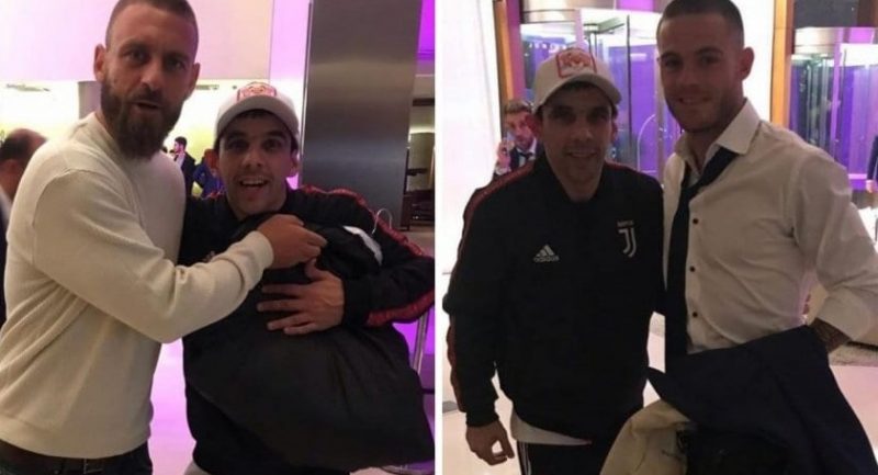 Patita tiene fotos con todos: con Diego Maradona, con Lionel Messi, con Cristiano Ronaldo, con Zinedine Zidane, con Antoine Griezmann… Pero ayer, cuando se presentó en el hotel del Xeneize, encaró a De Rossi, quien accedió de buena gana aunque con una condición relacionada con su pasado en la Roma: ¡le tapó el escudo de la Juventus en la campera!