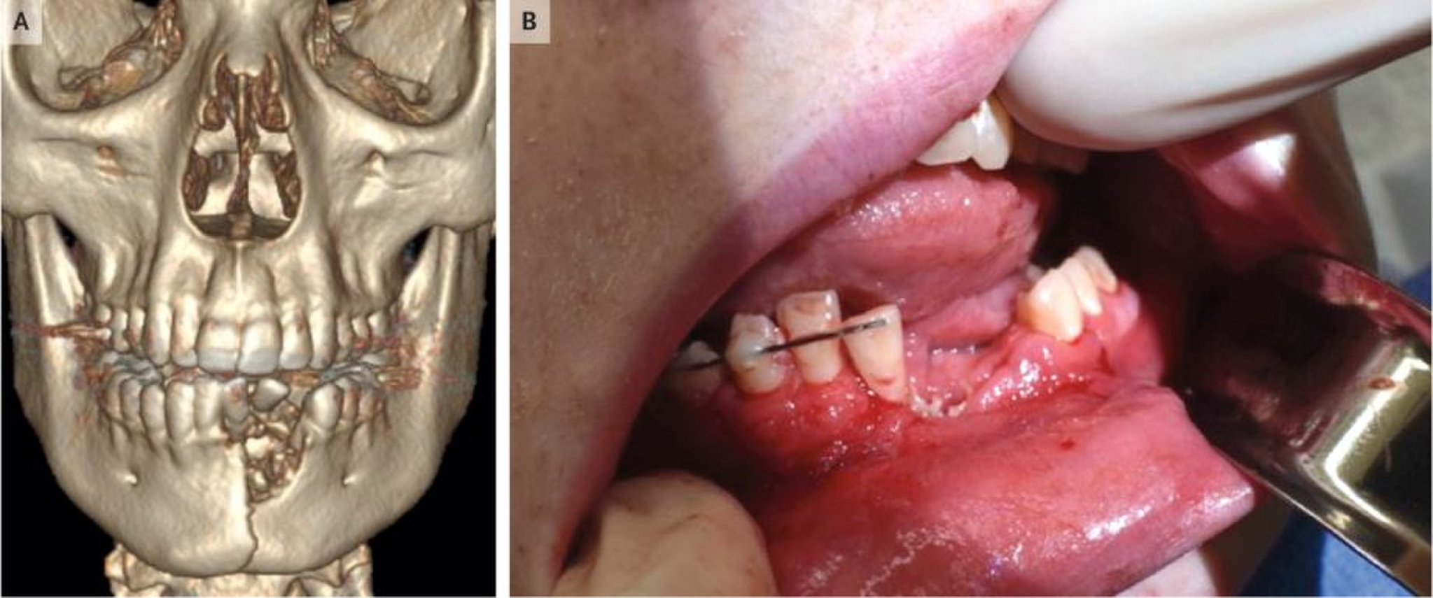 Para estabilizar su hueso mandibular, los facultativos le colocaron un arco de ortodoncia debajo de las encías inferiores, pero pese a ello la boca no se cerraba de manera correcta, por lo que decidieron mantenerle la mandíbula cerrada durante seis semanas fijándola con alambres para evitar cualquier movimiento que pudiera comprometer la recuperación.
