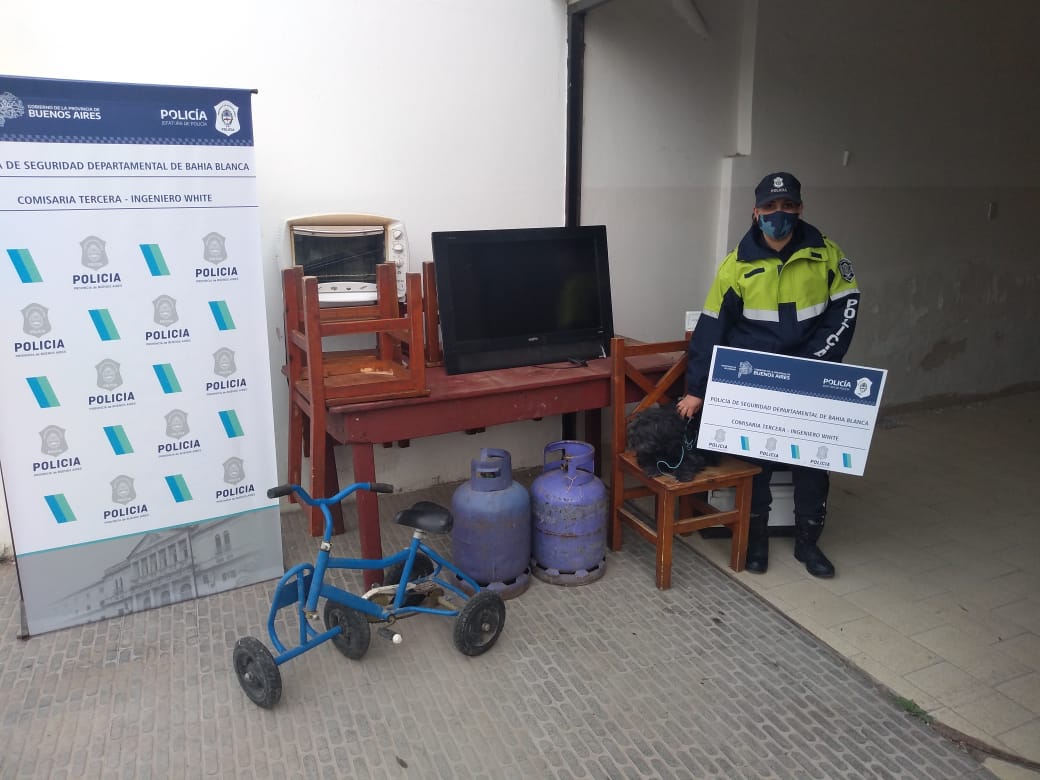 El procedimiento, en el que se pudo hallar dos garrafas, un televisor, una mesa con seis sillas, un microondas, un horno eléctrico, un triciclo y una cocina, fue realizado en Argerich 3516.