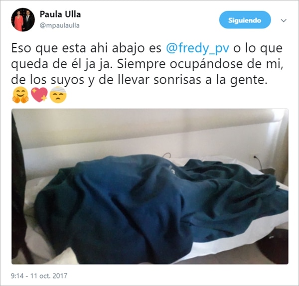 “Andá. Hoy tenés que estar ahí”, le pidió ella desde su cama de terapia intensiva, el lunes 9. Y él entendió que debía dejar el sanatorio para volver a la televisión, pero sólo por unas horas. Esa misma noche, tras quedar eliminado del Bailando 2017, Fredy Villareal regresó a la Clínica La Sagrada Familia, de Belgrano, para estar junto a Paula Ulla. Así lo quiso él. Así lo quiere ella.