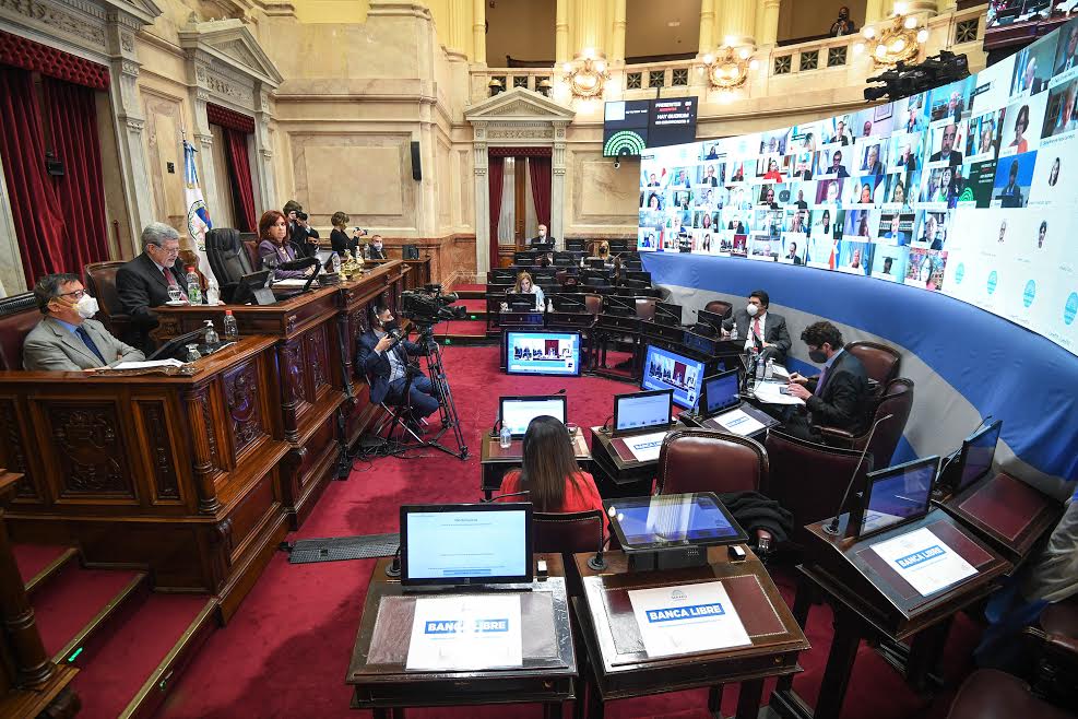 Anoche el Senado aprobó sin la oposición un proyecto de ley que fija en 24.500 millones de pesos anuales el monto que el Gobierno le transferirá a la Ciudad de Buenos Aires por el traspaso de la policía, en una sesión especial en la que se dio aval, además, a una modificación del protocolo de sesiones virtuales.