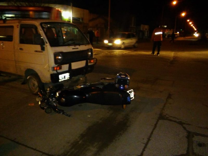 Un furgón Mitsubishi (RZI 806) conducido por Jose Marozzi, de 40 años, atropelló una moto Yamaha (GWL 837) al mando de Carlos Miño, quien fue trasladado a un centro asistencial con varios golpes en las piernas y clavícula derecha.
