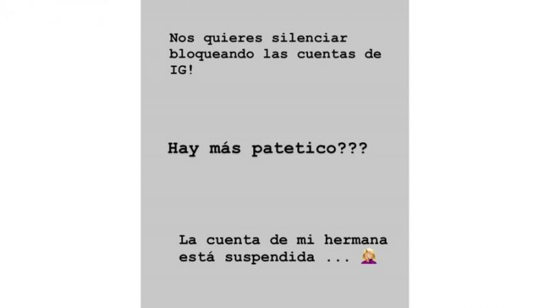 “¡Nos quieren silenciar bloqueando las cuentas de IG! ¿Hay más patético? La cuenta de mi hermana está suspendida”, expresó Dalma Maradona en sus stories, incrédula ante lo que le sucedió a Gianinna.
