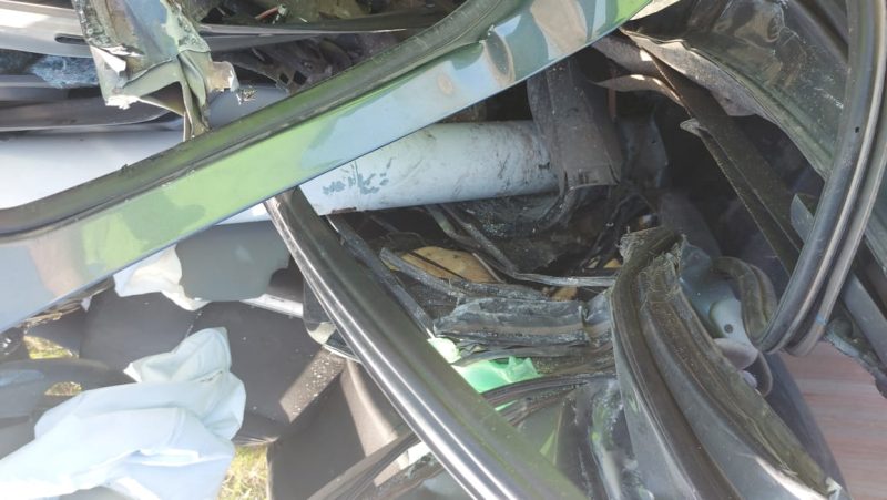 Fuerte impacto de un vehículo contra una columna de alumbrado en la ruta 3